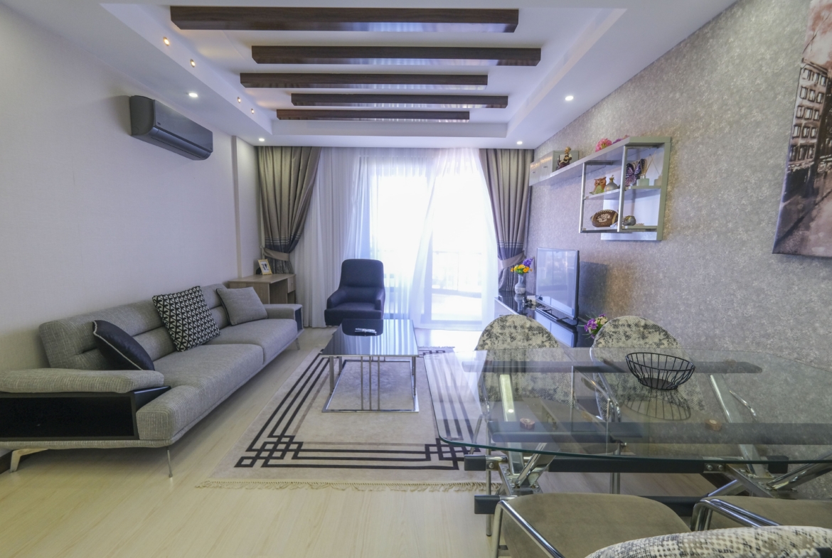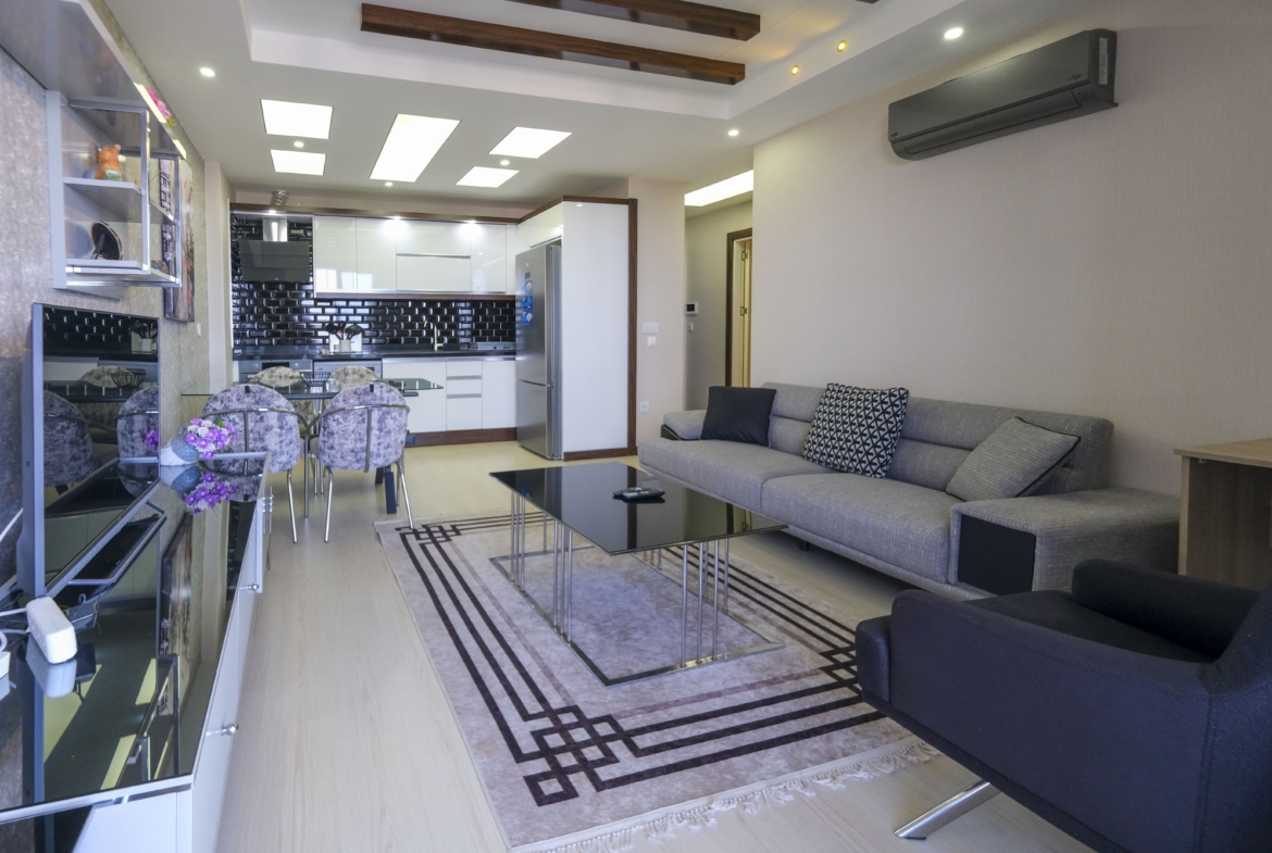 Our fully furnished 1+1 apartment is located on the 9th floor of 12 storey building. Has 60 sqm using area with 1 bedroom, 1 living room with open plan kitchen, 1 bathroom and 1 big balcony.