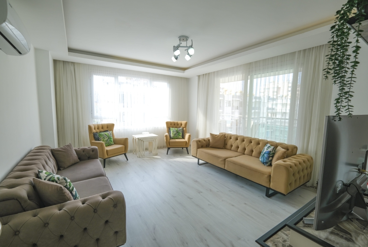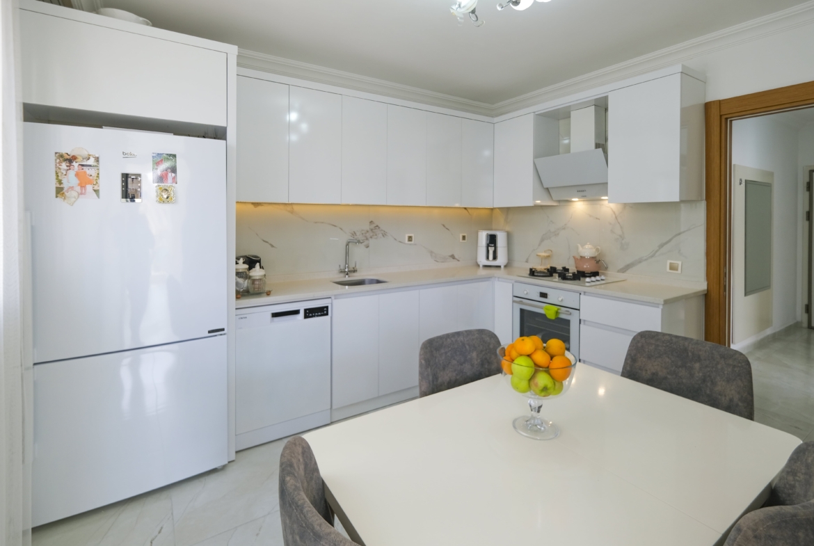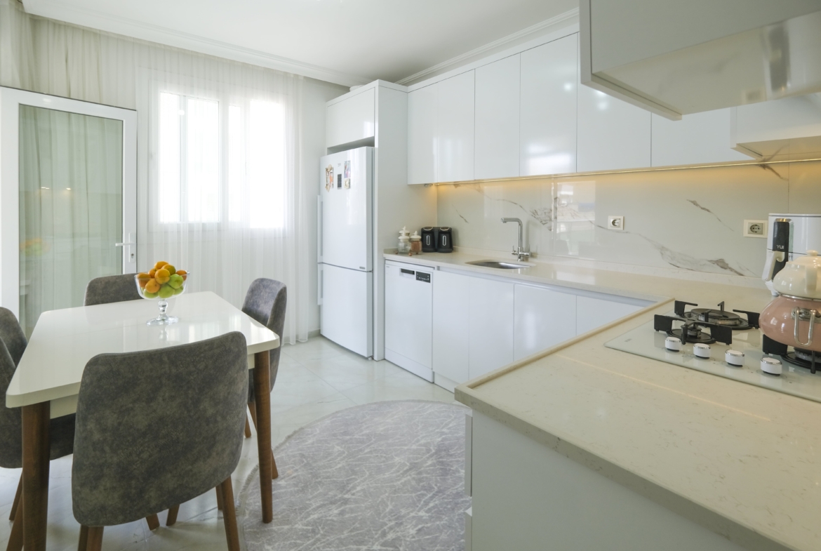 Separated Kitchen, 125 m2, 2+1 Apartment For Sale in Mahmutlar, Alanya – Our separated kitchen, spacious 2+1 apartment is located on the main street of Mahmutlar Alanya. 2 block complex is just 450 meters away from the beach and walking distance to the local market, shops, super markets, restaurants, cafes and all social amenities of the city.